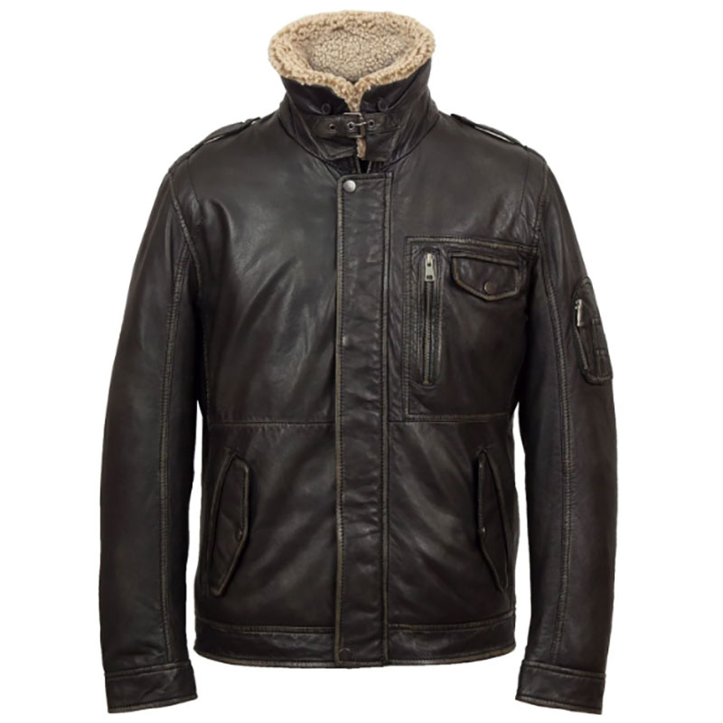 Tags: Leather Jackets, Men's Black Collared Leather Jacket